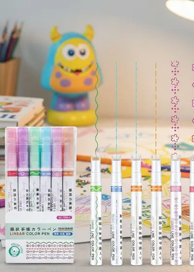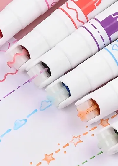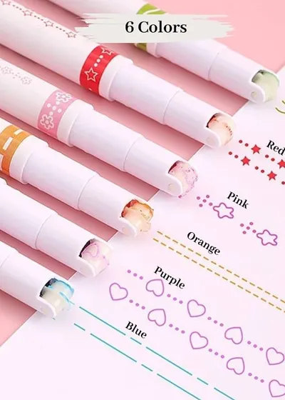 6-Pack Magic Roller Color Pens – Dual-Tip Pattern Highlighters for Journaling, Scrapbooking & DIY Borders – 6 Unique Vibrant Outlines