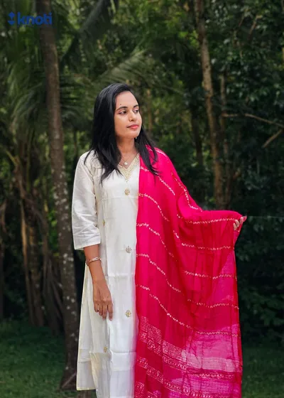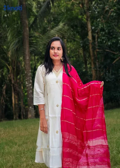 OFFWHITE TOP WITH OFFWHITE BOTTOM AND BURGANDI COLOUR DUPPATTA.