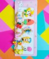 Variety Clips: Includes large statement pieces like the orange carrot and rainbow, as well as smaller "smiley" studs.