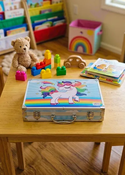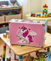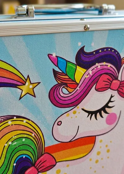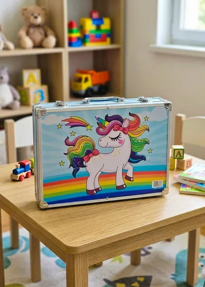 Magical & Durable Case: Features a beautiful, whimsical unicorn design on a sturdy pink briefcase with metal-reinforced corners, secure locking latches, and a comfortable carrying handle.